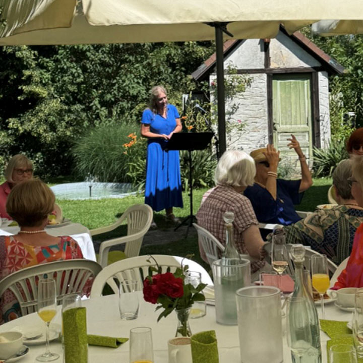 Dem Ruf der Einladung folgten in diesem Jahr zahlreiche Mitglieder, und schnell waren alle Tische voll besetzt. Bei einem Glas Sekt zur Einstimmung begrüßte unsere Vorsitzende Gisela die Gäste. Danach lockte ein leckeres Kuchen-Buffet. Die Sängerin Elke Bartz sorgte für den musikalischen Rahmen.